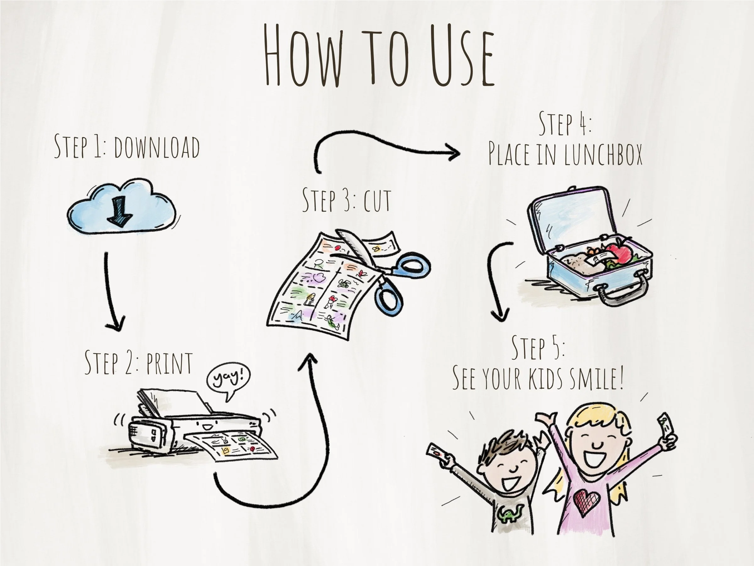 If you’d like to purchase a set, these Lunchbox notes are available in my Etsy shop. Once purchased, you just download the files, print, cut, and then they are ready to place in your kids’ lunchboxes. These notes are a great way to brighten your child’s day and let them know that you’re thinking of them, and they also present an opportunity to share something fun with their classmates.
